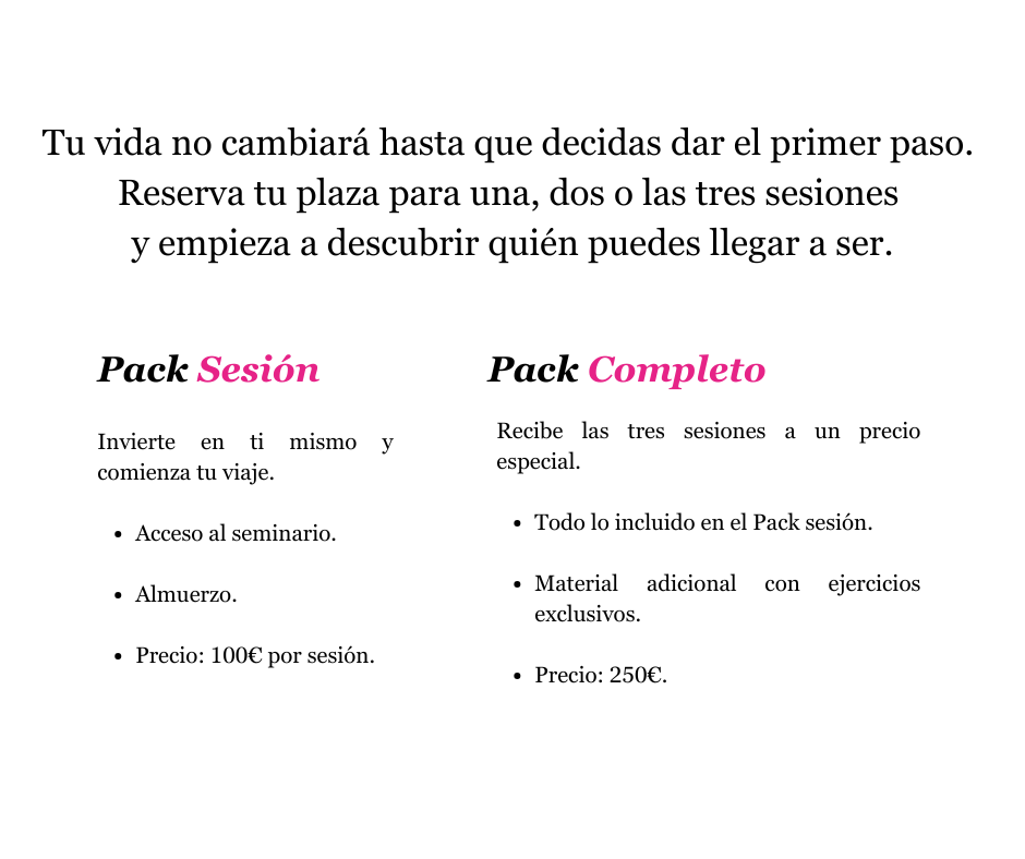 Cada sesión es única, pero juntas forman un viaje completo hacia el autoconocimiento y la acción.